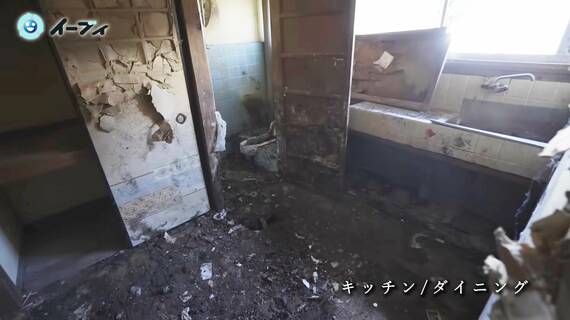 最下層のゴミは新聞紙などの紙類が湿気で分解され、もはや土になっていた。40年もの間、押し固められているので、手でどうにかなる硬さではない。腐敗が進んで畳に穴が開いているところもあった。スタッフの1人がバールで固まったゴミを掘り起こし、それをひたすら袋に詰めていく。