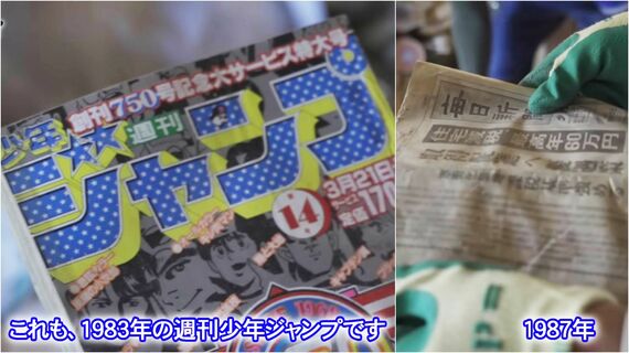 男性は「15年くらい前からモノが溜まり出した」と話していたが、それより前の住み始めた約40年前から部屋はゴミ屋敷になっていたようだ。最下層からは、1987年の新聞や1983年の漫画雑誌が出てきた。松田聖子がCMで「SWEET MEMORIES」を唄った懐かしの缶ビールも発掘された。