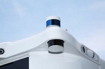 自動運転関連の装備では、7台のLiDAR(ライダー)センサーと、8台のカメラを搭載。これらにより、周囲の環境や障害物などを検知し、自動運転を行う。ちなみに、LiDARとは、レーザー光を使ったセンサーのことだ。ユニットから照射したレーザー光が物体にあたり、跳ね返ってくるまでの時間を計測し、車両と物体までの距離や方向を測定する。ミカでは、100~200mというより遠方を検知できる最新のLiDARを採用。アルマなどの従来モデルが搭載するLiDARの場合、検知距離は30~60mだというから、かなり遠方までセンシングできることになる。