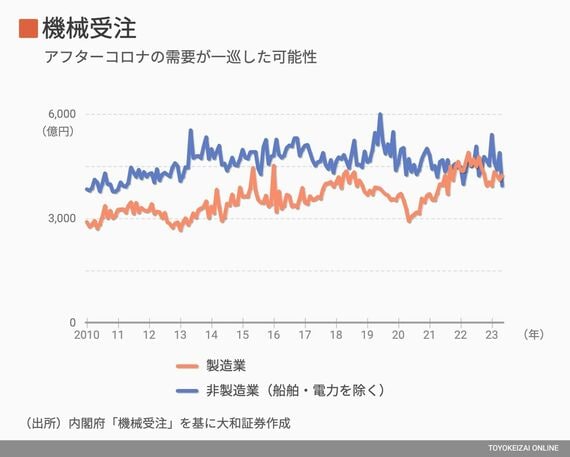 世界経済が減速し、輸出や生産が低迷する中、設備投資が伸び悩むことは自然な動きである。少なくとも受注(発注)の段階ではコロナ後のペントアップ需要が一巡しつつある可能性が高い。