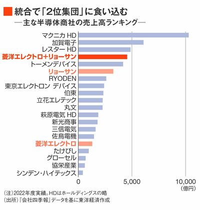 3位のレスターHDは、2019年に同業2社の経営統合によって売上高5000億円規模に浮上した企業。同年には投資ファンドのシンプレクスが持っていた菱洋エレクトロ株20%を菱洋の合意なく敵対的に取得したこともある。結局、菱洋がレスターHDから買い戻し“再編”は不発に終わっている。