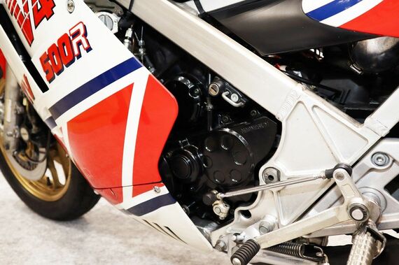 通常は、こうした違う方式を1つのエンジンに採用することはほぼない。RZV500Rの場合は、キャブレターとエアクリーナーのスペースを確保するための方策だといわれている。とくにエンジンに取り込む空気を濾過するエアクリーナーは、レーシングマシンには不用だが、市販車では必須の装備だ。RZV500Rのエンジンは、レーシングマシンと同様の排気量やレイアウトにこだわりながらも、市販車として公道走行するための装備を追加するために、さまざまな工夫がなされていたといえる。