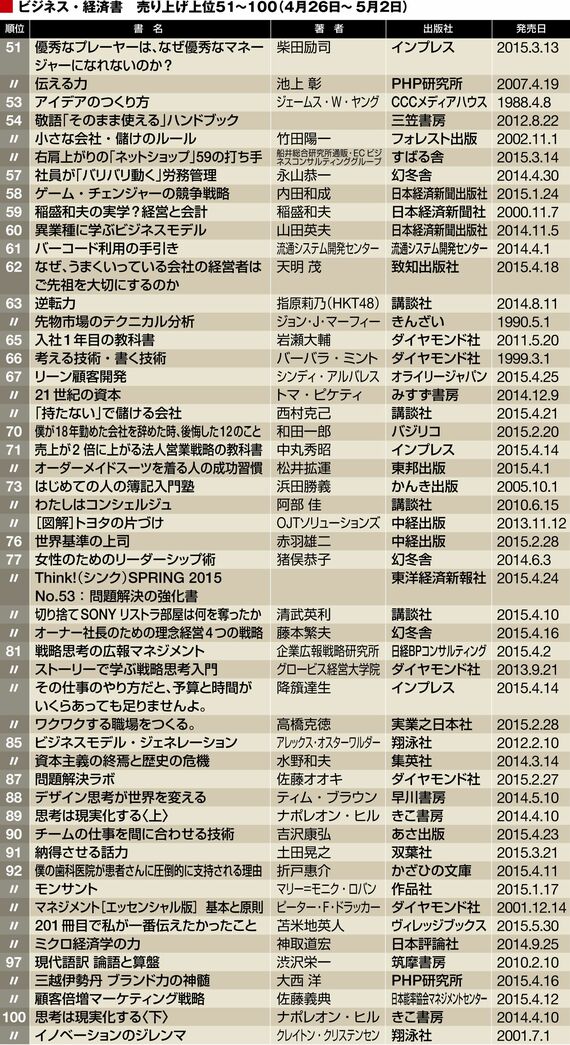 ライフ #Amazon週間ビジネス・経済書ランキング 前の記事 次の記事 アマゾンで売れた「ビジネス・経済書」200冊 連休を前に売れた本はこれだ! 2分で読める 公開日時:2015/05/08 07:45 東洋経済オンライン編集部 フォロー 1/5 PAGES 2/5 PAGES 3/5 PAGES 次ページが続きます:【次は102~149位】 4/5 PAGES 5/5 PAGES