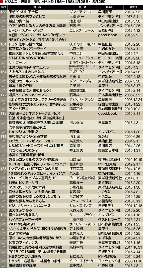 ライフ #Amazon週間ビジネス・経済書ランキング 前の記事 次の記事 アマゾンで売れた「ビジネス・経済書」200冊 連休を前に売れた本はこれだ! 2分で読める 公開日時:2015/05/08 07:45 東洋経済オンライン編集部 フォロー 1/5 PAGES 2/5 PAGES 3/5 PAGES 4/5 PAGES 5/5 PAGES