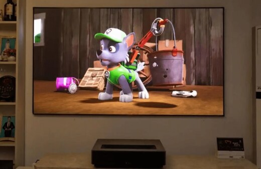 しかし、このプロジェクターはそんな面倒なことをする必要がありません。壁のほぼ真下、20~30cmくらい離すだけで4Kなどの高画質の映像を映し出せます。
