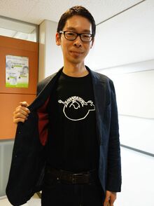 今回の訪問の目的の半分は、天才物理学者・浪速阪教授のモデルであろう橋本先生が本当に「反り牛」Tシャツを着ているのかを確かめることであった。反り牛ですね、それ。いや、待てよ。反っていることは反っているが。