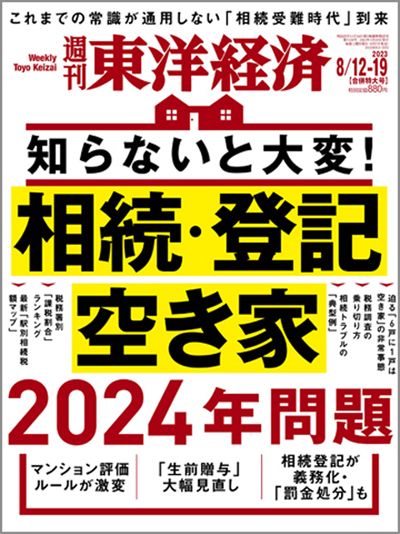 2024年から相続や登記・空き家のルールが激変。1月からは「生前贈与制度」が変更、4月には「相続登記の申請義務化」が始まる。そしてマンション相続税評価額の新算定ルールも導入予定だ。『週刊東洋経済』の8月7日(月)発売号(8月12・19合併号)では、「相続・登記・空き家 2024年問題」を特集。そうした相続関連の2024年問題とその対応策を解説していく。