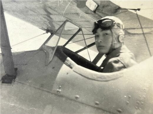 操縦席の前部にのめり込んでいる飛行帽を摑んで引き起こす。