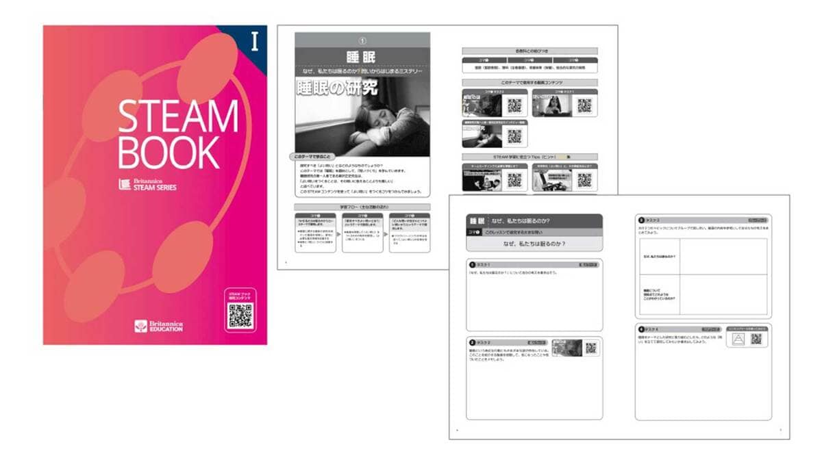 ブリタニカは最新の研究内容を中高生にとってわかりやすい教材とすることを目指してコンテンツ制作に取り組み、「未来の教室」事業に提供。この知見を生かし今回、STEAM教育に取り組む生徒と教員が、各教科の授業や総合的な探究の時間に教材として、または生徒の自主学習教材として活用できるワークブックとしてまとめた。10のテーマ(睡眠の研究、「こわい」と娯楽、ベジミート、認知とナッジ、ゲノム医療、ホタルと遺伝子組み換え技術、AIロボットの自律性、生分解性プラスチック、テレパシー技術、量子力学)といった学習プランが盛り込まれている。