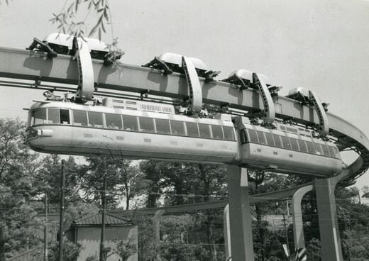 このような状況下で注目されたのが、モノレールだった。モータリゼーションの進展の速度を考えれば、地上を走る路面交通と分離した交通手段を導入すべきなのは明白であり、当時、考え得る選択肢としては、地下鉄、アメリカなどの都市で見られる高架鉄道、そしてモノレールがあった。