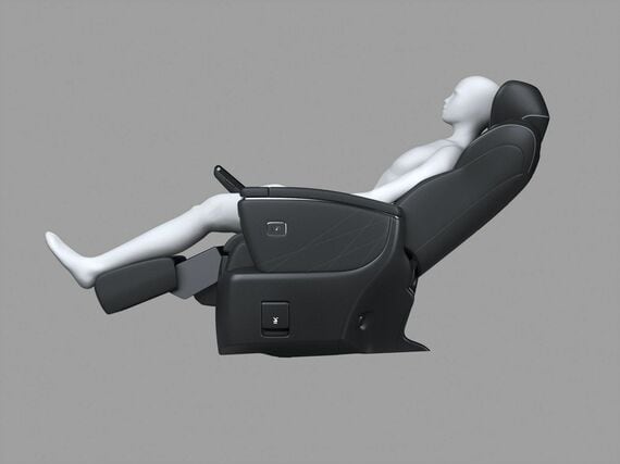 走行中、背もたれは過度に寝かさず、周囲の風景が見える程度の角度に留めておきたい。また、オットマンも踵が床に付く高さで使おう。ベッドに寝ているような姿勢は、衝突時にさまざまな危険を生じさせるから注意したい。