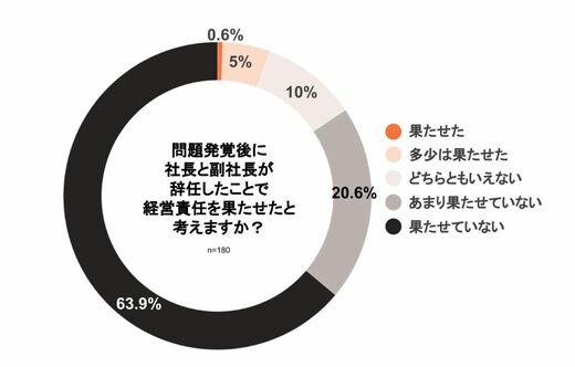 「果たせていない」「あまり果たせていない」とする意見では、辞任しても実際には問題が解決していないことや、元社長らがいまだに株主としては健在であることを指摘する声がある一方、「多少は果たせた」と回答した弁護士からは、これまでよりは経営環境の改善が見込めるとの意見もあった。