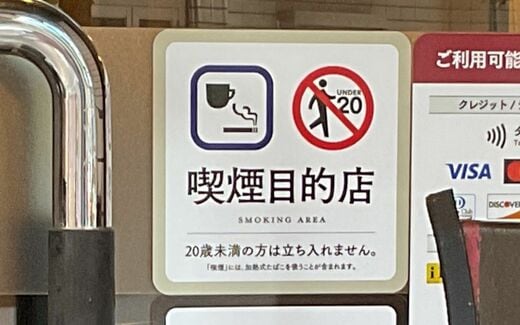 確認するとこれらの店には「喫煙目的店」のステッカーが店外に貼られていた。これらの店は健康増進法で定める「喫煙目的施設」(※名称は喫煙目的店、喫煙目的室などもある)だったのだ。