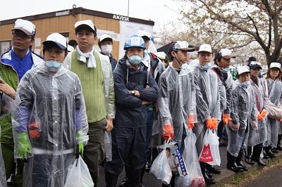 滋賀県在住の永曽雅一さん(32)は、山登りの仲間とともに4月28日から石巻市内の住宅からの家財道具の運び出しに従事。30日には、日本製紙石巻工場付近の家屋の庭先から泥や流入したパルプの掃き出しを、8人のチームで1日がかりで終えた。永曽さんの母も1日遅れで合流し、30日から料理店の厨房内の掃除にたずさわった。