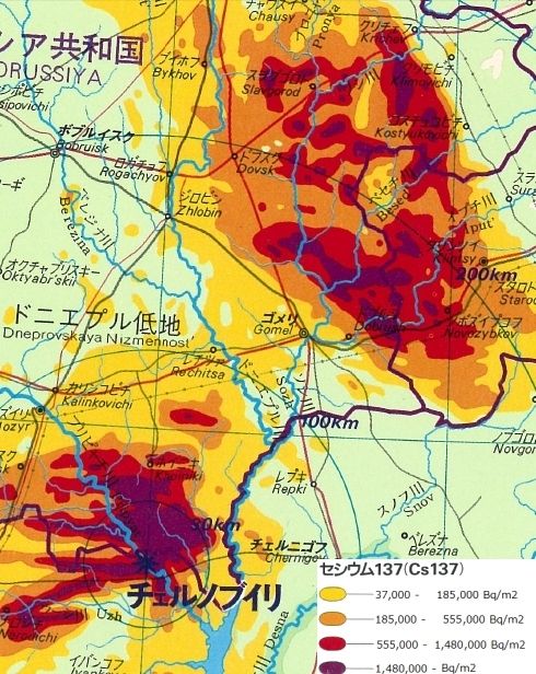 図4■チェルノブイリ事故でのセシウム137による土壌汚染地域