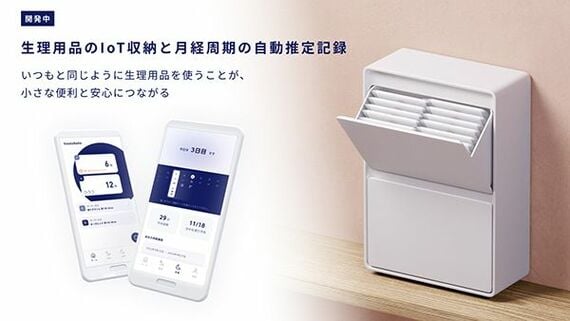 人々の健康と福祉に貢献するソリューションの開発は、すでにいくつも進んでいる。1つは、月経や出産など女性特有の健康課題をサポートする「フェムテック(Femtech)」分野における「生理用品IoT収納ケース」だ。女性にとって月経周期や状態の把握は、健康管理において重要だ。世の中にはさまざまな記録管理アプリが存在するが、慌ただしく過ぎる日々の中で、記録を忘れてしまうことは少なくないだろう。