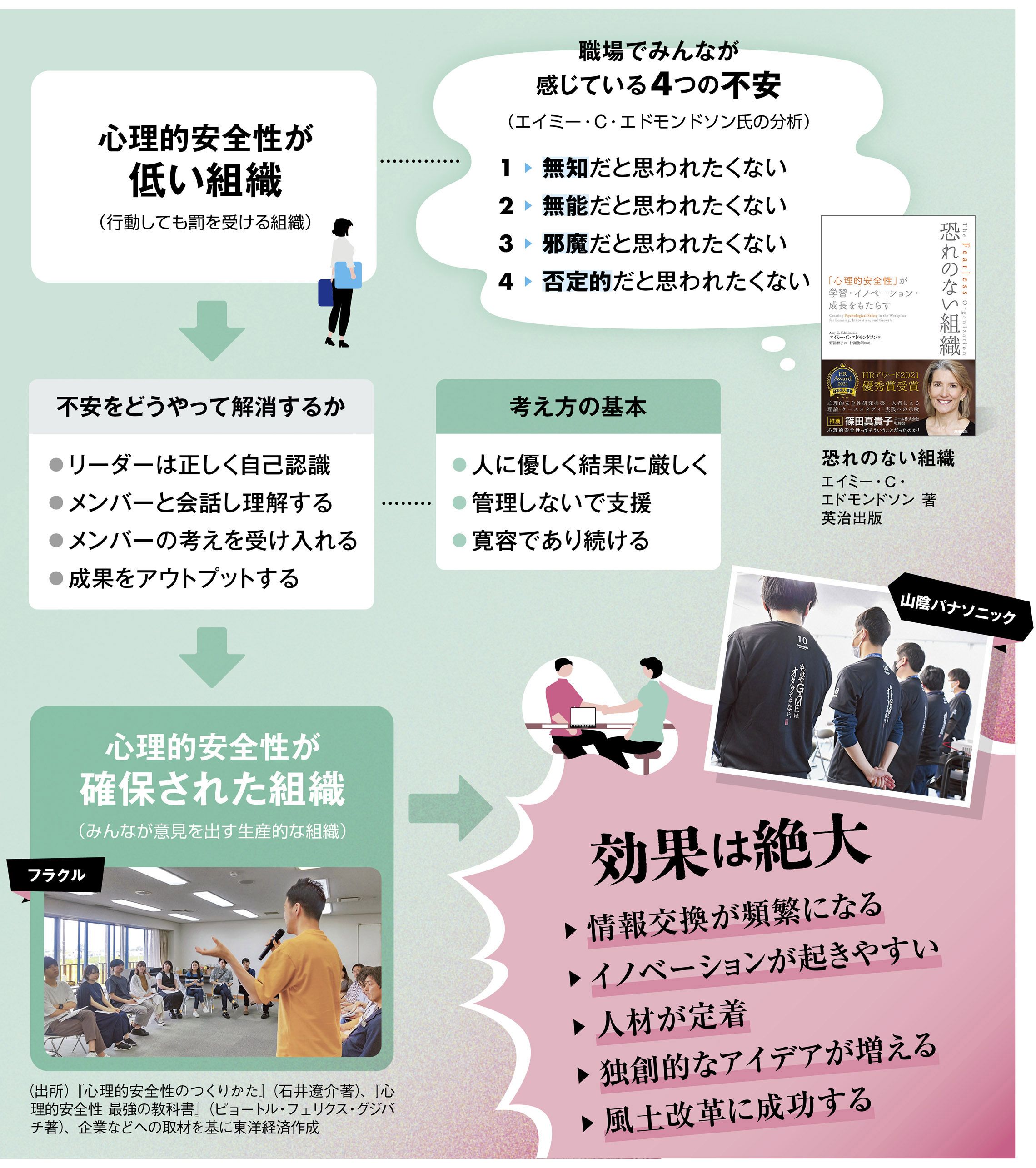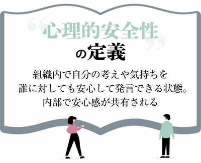 注意したいのは、多くのビジネスパーソンが「心理的安全性の高い組織はぬるま湯的な組織である」と勘違いしていることだ。心理的安全性の高い組織には一定の緊張感も伴う。この特集内でプロノイア・グループのピョートル・フェリクス・グジバチ氏が指摘するように、目的を間違えると「ワイワイガヤガヤ、笑い声が聞こえる」だけの職場になってしまう。目指すのはあくまで仕事で高いパフォーマンスを達成することなのである。
