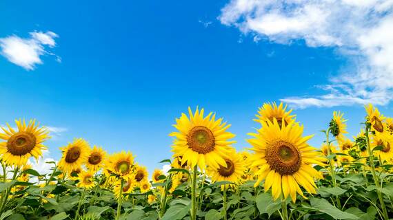 曇りや雨の多い悪名高い気候がここ数週間のように鳴りを潜めているときには、ストーク・フルーツファームズの中にあるサムズ・サンフラワーズに花摘みという、いかにもイギリス的な夏の楽しみのために大勢の観光客が集まってくる。