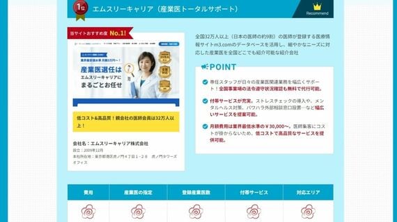 これが、冒頭のお詫びで名前を伏せられていたウェブサイトである。サイトが休止した背景には、エムスリーキャリアが産業医紹介サービスで行っていた、ステルスマーケティング(ステマ)があった。