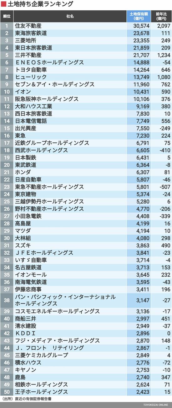 政治・経済・投資 1兆円超が11社、「土地持ち企業」300社ランキング 上位は不動産やインフラ系、1000億円超は116社 2分で読める 公開日時:2023/09/07 05:30 東洋経済オンライン編集部 フォロー 1/7 PAGES 2/7 PAGES 土地保有額1~50位 次ページが続きます 3/7 PAGES 4/7 PAGES 5/7 PAGES 6/7 PAGES 7/7 PAGES