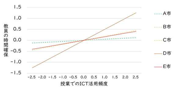 授業でのICT活用が教員の時間の確保につながっている自治体があります。授業でICTを活用することで、教材配信などの業務も効率化され、授業準備や児童生徒と向き合う時間が確保しやすくなったようです。また、学習評価の充実化などの校務でのICT活用により、そうした時間を確保しやすくなっている自治体もあります。ICTを積極的に活用する学校に話を聞くと、教職員同士の信頼関係があり、わからないことを気軽に聞ける風土があるようですね。