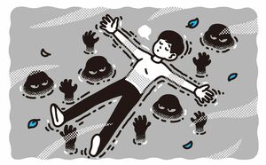 「やばい、おぼれる」と思った瞬間、その手は救いを求めて空(くう)をつかむでしょう。両足は水を蹴って前に進もうとするに違いありません。そのたびに藻は足にからまり、焦り、不安になり、大声で叫びたくなります。