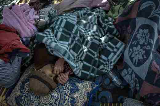 10日の夜になると、家が倒壊したり、安全でなくなったりした家族は、カラフルな布やビニールシートを石で押さえたその場しのぎの避難所や、消防士が用意した黄色いテントの中で寝る準備をした。余震を心配する人々は戸外で寝た。
