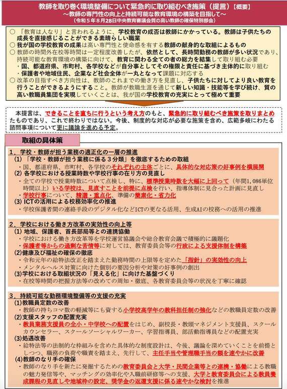 次に、中教審の緊急提言、ならびにその取り組みを強く進めてほしいという文科省の通知について、見ていく。下の図は概要だ。