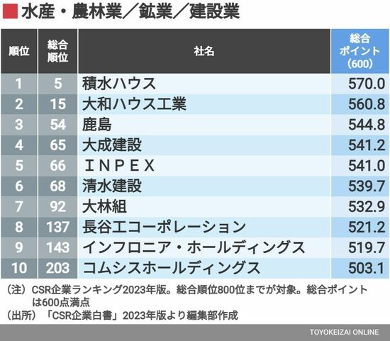 ビジネス #CSR企業総覧 前の記事 次の記事 信頼される「CSR企業ランキング」【非製造業編】 気候変動対応に取り組む企業が増加 9分で読める 公開日時:2023/09/27 05:20 村山 颯志郎 東洋経済『CSR企業総覧』編集長 フォロー 1/8 PAGES 2/8 PAGES 3/8 PAGES 4/8 PAGES 5/8 PAGES 6/8 PAGES 水産・農林業/鉱業/建設業など3業種の上位10社 次ページが続きます 7/8 PAGES 8/8 PAGES