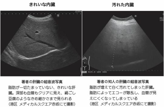 何の症状も出ないので、気楽に考えていらっしゃるかもしれませんが、残念なことに脂肪肝は、画像で見ても明らかに異常な状態です。肝臓は「沈黙の臓器」と呼ばれており、脂肪肝になっていても痛くなったりはしないのです。