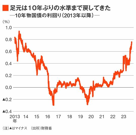 日本の長期金利が上がっている。指標とされる10年物国債利回りは、直近で0.75%ほどとなっており、これはおよそ10年ぶりの水準だ(下グラフ参照)。その背景を一言でいえばインフレ率が上昇しているからだ。