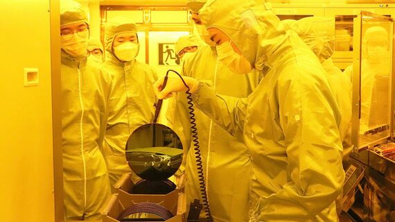 直径200ミリメートルのシリコンウェハーを専用器具でつまみ、しげしげと眺める。キラリと反射した円盤には、水色の防塵(ぼうじん)服に身を包む若者の真剣なまなざしが映った。熊本県水俣市の研修センターで9月、九州の高専生11人がクリーンルームを見学。ほかにも洗浄や露光、成膜など半導体製造に欠かせない各装置を巡回した。熊本高等専門学校4年の山田晴己さん(18)は「教科書で得た知識が現実とリンクした」と目を輝かせた。