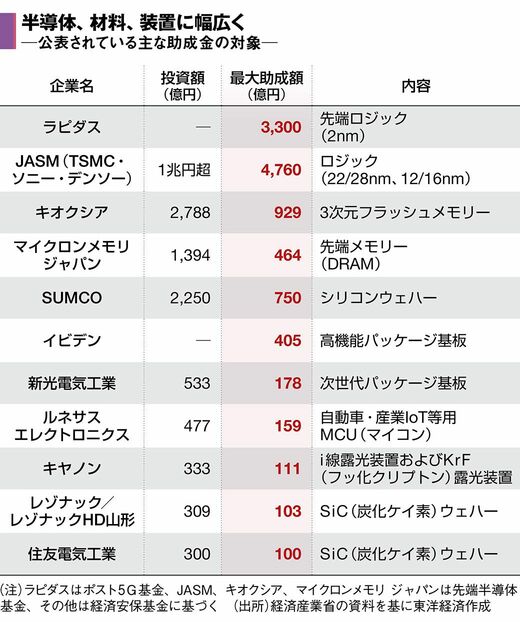 2021年以降、政府は投資補助を大型化する法改正を行うなど半導体産業への支援を国策として進めてきた。2022年度の補正で計上した関連予算は1兆3000億円。前代未聞の規模だ。