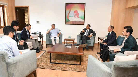 7月に訪印したラピダスの小池社長(右から2番目)と経産官僚ら(写真:バイシュナウ電子・情報技術相の X 投稿を転載)