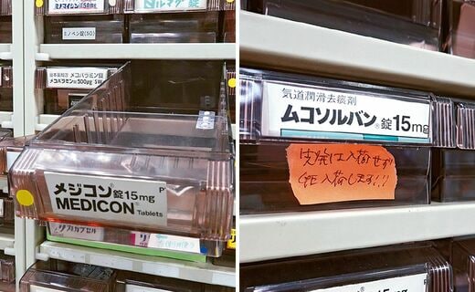 クリニックには薬局から毎日、納入のない薬の情報が伝えられる。とくに足りないのが「メジコン」を代表とするせき止めの薬だ。副院長で薬剤師の八田重雄氏は「申し訳ないけど、かかりつけ薬局で同じ成分の市販薬の購入を相談してください」と、薬を求める患者に説明することもあるという。