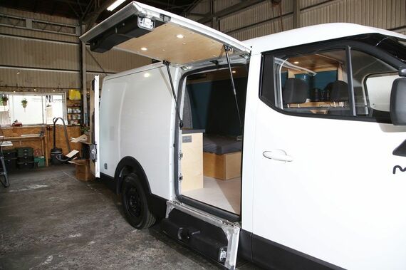まずは、T-01の主な特徴を紹介しよう。なお、今回は、神奈川県横浜市にあるカーステイの施設「モビラボ(Mobi Lab.)」を訪問。ここは、キャンピングカーの一般ユーザー向けDIYスペースなどを展開するとともに、T-01の製造拠点でもあり、実際に、デモカーをじっくりと見ることができる場所だ。取材は、同社代表取締役の宮下晃樹氏に対応していただいた。