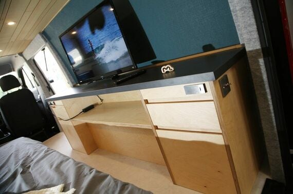 一方、T-01はより大きな電圧の24V対応のバッテリーを使うことができる。そのため、電子レンジ、冷蔵庫、エアコン、IH調理器など、さまざまな家電製品を同時に使う場合などでも、電力不足を感じず、より「心置きなく」使えるのだという。また、室内3カ所には100V電源のコンセントも用意しており、家電製品はもちろん、PCを使ってワークスペースとして活用することも可能だ。