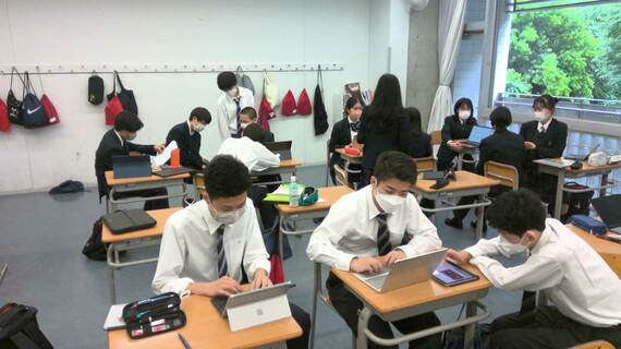 中川氏は現在、高校2年生に英語を教え、インターナショナルクラスで担任をしているが、すっかりICTが授業の中に溶け込んでいる。