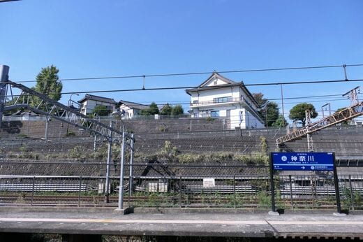 駅舎は神奈川宿にちなんだという和風のデザインが特徴だ。「関東の駅百選」に選ばれている。青木橋の脇に出入り口があり、改札を通って階段を下りると、切り通しの限られたスペースのなかでJRの横須賀線・東海道線・京浜東北線などと並んで窮屈そうに対面式のホームが設けられている。