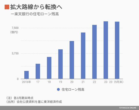 「金利が上がれば、住宅ローン関連の貸し倒れが増える可能性が高い。もともと、中所得・高所得の顧客に絞って住宅ローンを提供していたが、今後はターゲットとする所得層をもう一段上げる」と、楽天銀行の永井啓之社長は同日の決算説明会でこう説明した。