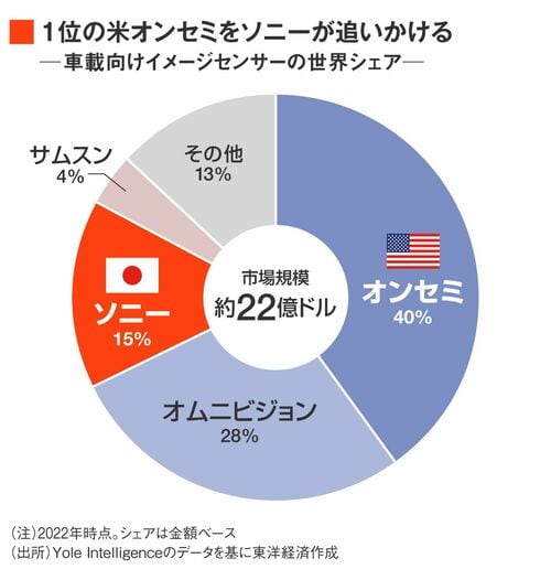 現時点でソニーのシェアが低い理由は明確だ。ソニーが車載向けの画像センサー市場に参入すると表明したのは2014年。先行するオンセミは2005年に車載専用の画像センサーを発表しており、自動車メーカーや部品メーカーとの付き合いにも一日の長がある。