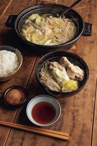 コトコト煮る間に手羽元がやわらかくなって、スープはうまみがたっぷり。野菜は白菜のかわりにキャベツ、えのきだけのかわりにほかのきのこを使ってもいいですし、小松菜やせりなどの青菜を加えてもかまいません。