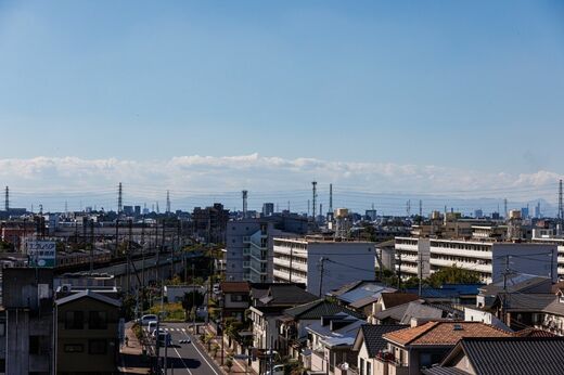 蒲生駅から電車に乗って新越谷方面に向かうと、同じ高架ながらもぎゅっと急勾配を駆け上る。これは、高架の武蔵野線を跨ぐため。車窓からは住宅の広がる越谷の街並みがよく見える。新越谷駅に到着する少し手前には、シンボルでもある「サンシティ」も。