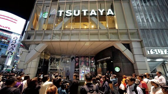 雑踏事故を防ぐべく、警察官が厳戒態勢を取るなど、異様な雰囲気も漂う。そんな中、スクランブル交差点のすぐ脇に、カメラを構えたマスコミや一般人の群れがみるみる膨らむ一角があった。同日18時をもって休業し、リニューアル工事に入った「SHIBUYA TSUTAYA(ツタヤ)」だ。