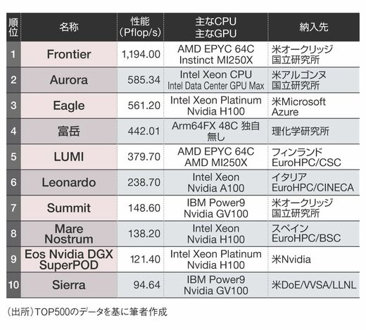 さらに、インテルはスーパーコンピューター用でもNVIDIAを追随しようとしている。11月はじめにスパコンの性能を評価するテストが行われ上位機種がTOP500として発表されたが、その中で性能第2位のAuroraスーパーコンピューターにインテルのXeonプロセッサーだけではなく、 Intel Data Center GPU Maxシリーズも使われていたことが明らかになった。これまでスーパーコンピューターに使われている市販のGPUはNVIDIAが圧倒的に多かった。