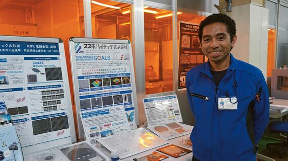インドネシア出身のペトルス・ヤサヤ・サモリさん(34)は、山形大学工学部の博士課程を修了後、2018年にスズキハイテック(山形市)に入社した。