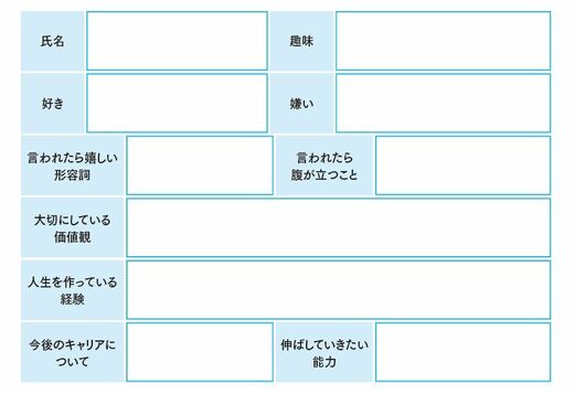 「取り扱い説明書」とは、「言われたら嬉しい形容詞」「大切にしている価値観」「言われたら腹が立つこと」「今後のキャリアについて」「伸ばしていきたい能力」などを書いてもらい、共有することで、お互いの理解を深めるツールです。