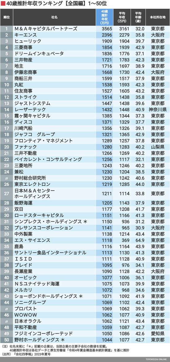 政治・経済・投資 #賃金・生涯給料ランキング 前の記事 次の記事 40歳年収が高い「全国トップ500社」ランキング 1位は3565万円!1000万円以上になったのは60社 3分で読める 公開日時:2023/11/25 05:00 東洋経済オンライン編集部 フォロー 1/11 PAGES 2/11 PAGES 1~50位 次ページが続きます 3/11 PAGES 4/11 PAGES 5/11 PAGES 6/11 PAGES 7/11 PAGES 8/11 PAGES 9/11 PAGES 10/11 PAGES 11/11 PAGES