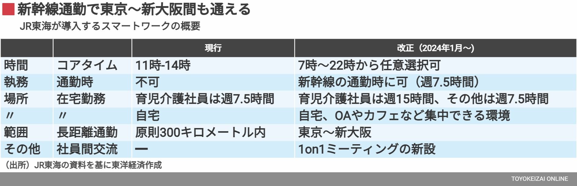 同社は2014年、「どこでもオフィス」という人事制度を取り入れ、リモートワークをいち早く採用していた。ただ毎月の回数制限(5回以内)が決められており、新幹線通勤のケースでは、最低でも月15日以上(月20日出勤のうち)の出社が必要なため、当時は利用者が少なかったと思われる。