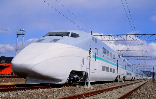 [7、 初の全車2階建て新幹線] 1994年、全車2階建てのE1系「MAX」が登場。広がり始めた新幹線通勤需要に応えた